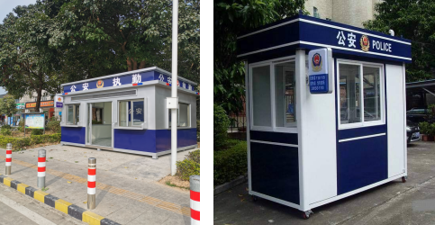 治安崗亭傳統意義上就是小房子,因為安裝方便結實耐用可以移動等特點被廣泛使用,特別是治安人員,在處理事故違法違規等事件可以就地解決,因為現代崗亭有LED顯示屏和爆閃和警示燈,內部還集成了網絡無線喊話器、中控系統、網絡連接線、智能電話等數自化裝備。有效的提高了工作效能和執勤力度,在緊急事故處理上更是一哨一崗,就地處理。